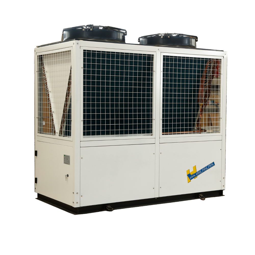 (三) 機(jī)組立柱采用大圓弧設(shè)計(jì)美觀大方。機(jī)組兩端進(jìn)出水方便安裝,可放置空間廣。冷凝風(fēng)機(jī)采用大角度、低轉(zhuǎn)速新設(shè)計(jì)確保機(jī)組運(yùn)行平靜。